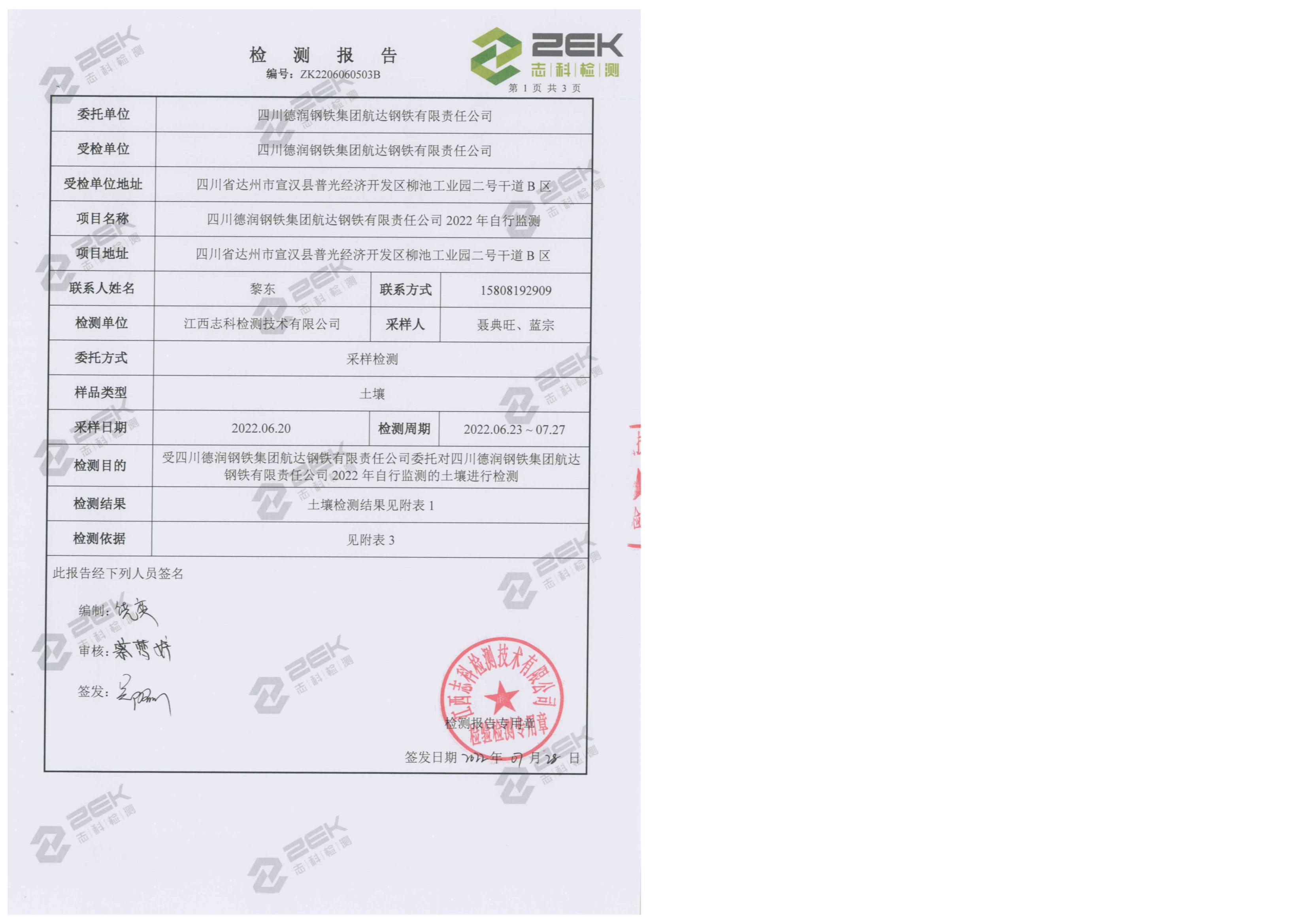 航达钢铁2022年上半年土壤自行检测信息公开(1)