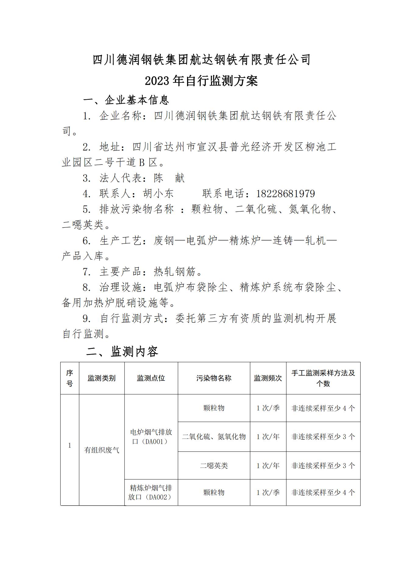 航达钢铁2023年自行监测方案