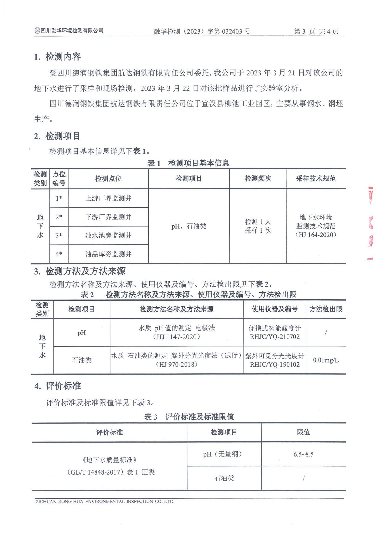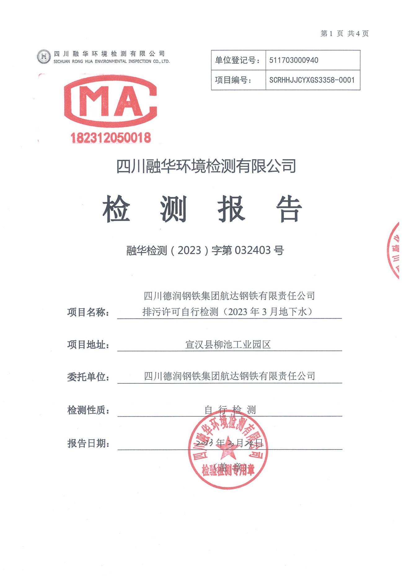 航达钢铁2023年3月地下水检测报告
